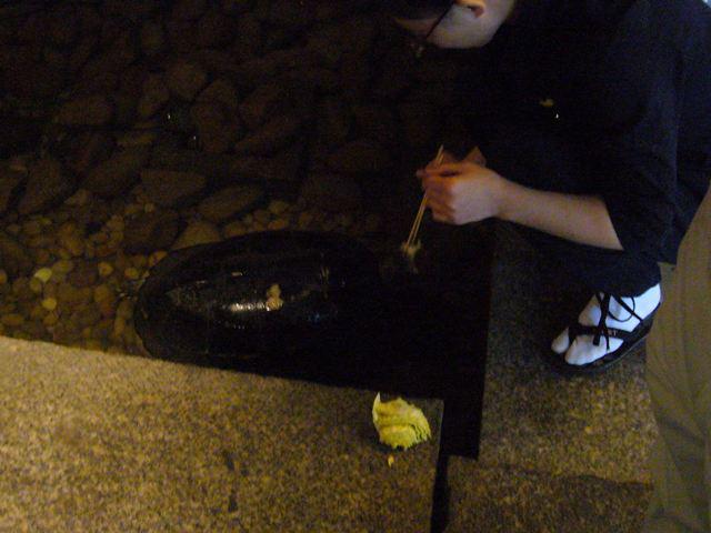 店員さんが餌をやっていました。