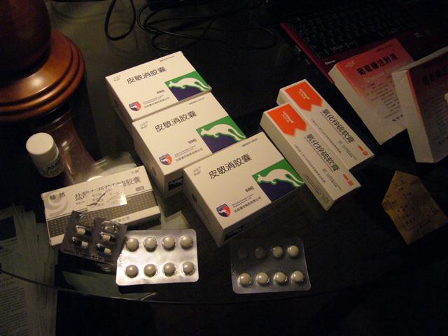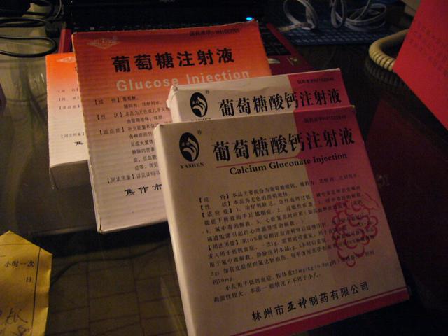それぞれに服用方法書が、張り付けてあります。飲み薬、塗り薬、栄養剤、そして点滴用ブドウ糖液です。次回診療時に持って行くんだそうです。合計で264元くらい、3300円くらいです。皆さんも何かあったら安心して大きな病院に行ってください。。笑。ホント。