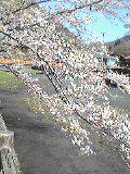 歩道は、桜の木が占領しています。人は桜を避けながら歩きます。