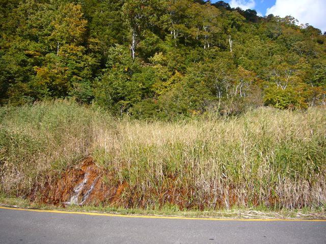 血の池と呼ばれる鉄分が浮き出ている湿地