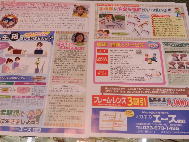 ▼*チラシ出来ました。(*^▽^*) メガネのエース上山店