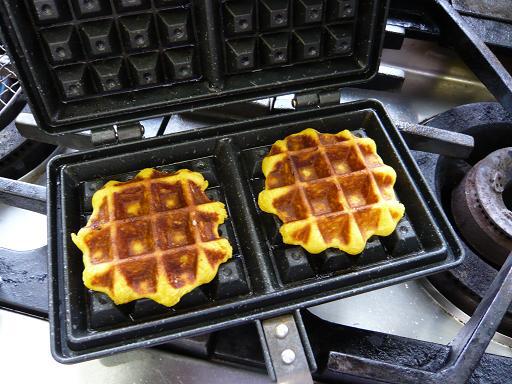 写真は「レインボー野菜を使った ワッフル」です。¥1個150