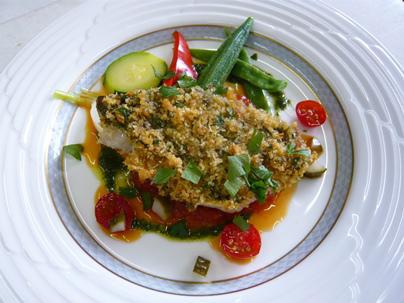 毎日蒸し暑い日が続いて身体がヘロヘロになりそうな感じです。好天が続けば水不足になるくらい雨が降らないし、今度はいつまでも長い雨で作物にはよくないらしく農家さん泣かせの天候不順。 今日野菜を届けてくれたその農家さんいわく、山の動物たちにも影響があるようで、今は特にスイカ畑にタヌキさんの被害が多く発生しているようです。 いつもの年だとそろそろ食べごろで明日出荷出来るようなスイカを夜のうちに被害に遭うそうですが、今年はまだそれに満たないものまで食べて行くそうで、次の日に自分の食べるスイカにはしっかりとひっかき傷を残して行く所なんかは、なかなか賢いと農家さん。 隣の畑の方は業を煮やして捕獲用の籠を買って仕掛けたものの、籠には入って餌のウインナーはなくなっていたが近くにあったスイカに扉が引っかかってその隙間から逃げられたようだとも。 笑い話ですが、タヌキもよっぽどおっかなかったんだべぇ。あそこの畑やばいから気をつけろって井戸端会議でもしたのか,回覧板でも回したのかそれからまだでできてねぇなとも。 お互いに大変な世の中だぁと笑っていましたけどね。 関東の梅雨明けも2週間くらい早いというし、丁度いい具合にはならないんですかね。誰かも言っていましたが本当に秋と冬が早く来るのでちょっと心配ですね。 写真は、魚のガーリックとハーブパン粉焼き、バジルとトマトソース。自家製の干しトマト添えです。今週のランチ情報はこちらからご覧ください。http://www4.ocn.ne.jp/~juin/lunch.htm 夏のコースメニューです。http://www4.ocn.ne.jp/~juin/natu_menu.html
