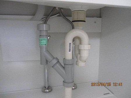 洗面台下の排水パイプは、パイプ内の臭い止め、排水パイプエアー抜き、ホップアップ機能など複雑になっています。髪の毛など流さないように注意が必要です。もし詰まった場合は、パイプの接続部を外して中の掃除をします。どの接続部も手で外せます。上からパイプ内に入っているホップアップの細い栓の所と、下のカーブの所が詰まりやすい所です。この時、赤枠で囲った床下に入っているパイプは抜かないでください。この部分にはパイプ外への臭い止めキャップが取り付けてありますので、ご注意ください。