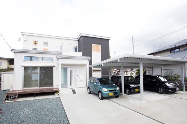 ■タイプ/FUTABA(シンプルモダン)■施工面積/46.09坪■家族構成/4人■間取り/4LDK■建築データ・建設地/山形市印役町二丁目・敷地面積/375.56m2(113.38坪)・建築面積/81.15m2(24.50坪)・1階面積/78.67m2(23.75坪)・2階面積/54.65m2(16.50坪)・延床面積/133.32m2(40.25坪)・施工面積/152.67m2(46.09坪)