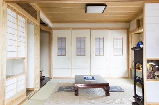 以前のお住まいの住宅の床束や地板、建具などを使用し、