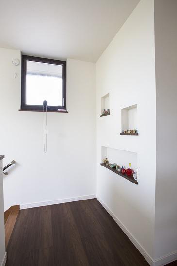 (右)2階トイレは、クロスを一部色味のあるものを使用し、