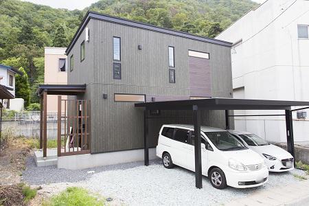 深緑が印象的な外観は木目が美しく表現されたサイディングを使用。