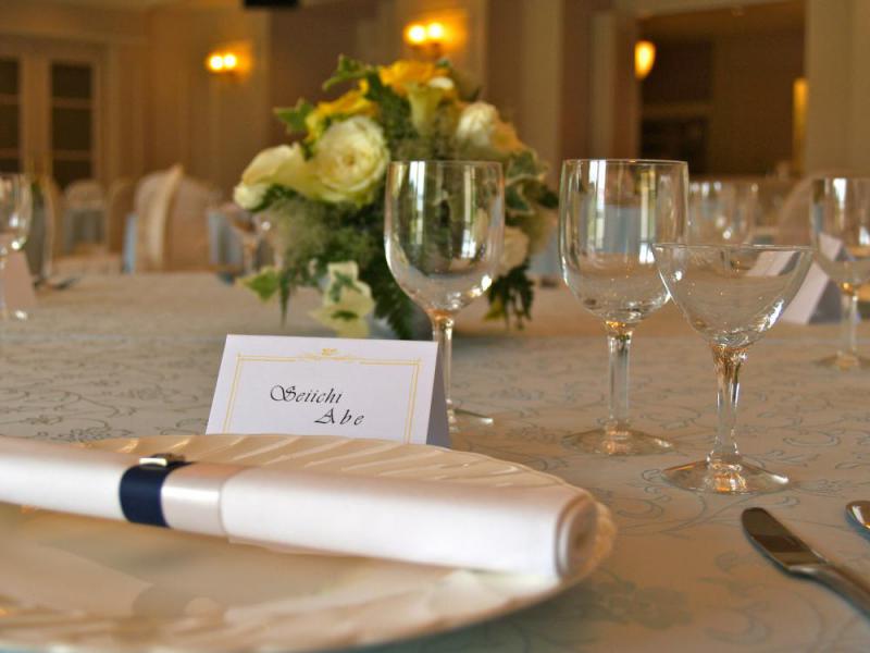 当館一番人気の披露宴会場「来夢」の会場です。 当館では唯一フローリングの会場になっており、中庭が見わたせて明るい会場となっております。晴れの日には中庭でご招待のお客様と和やかに歓談も楽しめます。60名様のゆったりとした披露宴に最適です。 御見学は随時可能でございますので、是非御来館頂きたいと思います。
