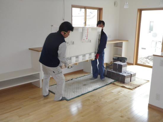 ▼河北町H団地 HA様邸新築工事-45 蓄熱式暖房器搬入 『テクノストラクチャーで建てる山形の長期優良住宅』