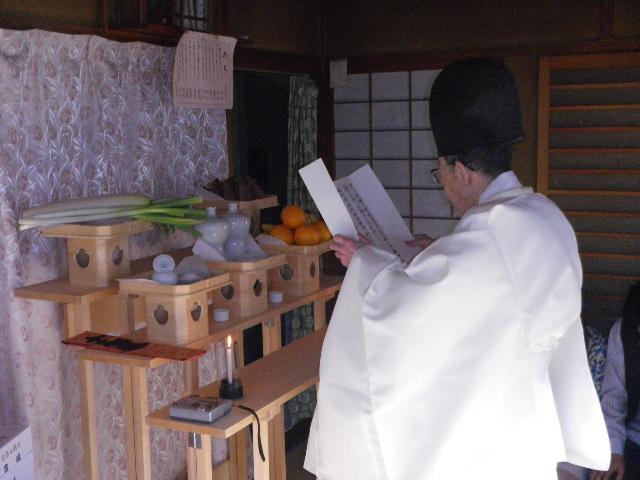 解体前に豊烈神社 神主様より、お世話になったお家や神様に感謝し、解体工事が無事に終了するように祈願して頂きました。