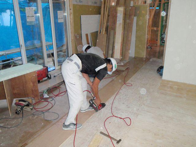 1階床フロア貼り 始まりました。