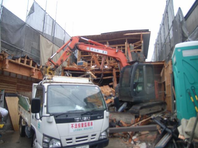 ようやく現場に重機が搬入され、重機を使っての解体が始まりました。