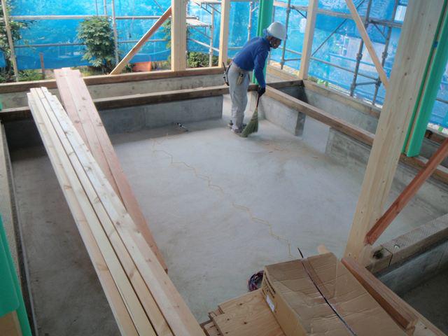 大引きを取り付けて 床合板を貼っています。