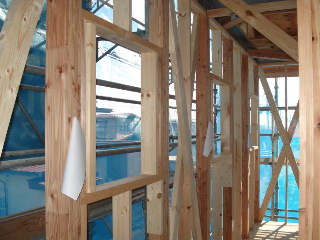 窓が取り付く部分の下地造作をしているところです。