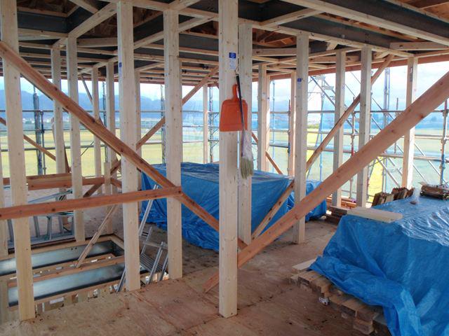 建て方も無事に終わり 今 火打ち梁