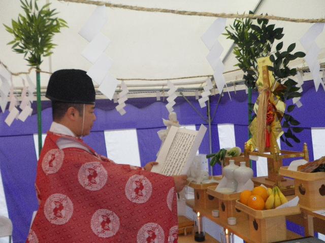 お施主様、お客様に続き、弊社 取締役建築部門長「三上」が玉串を奉奠し、工事の無事完成を祈念致しました。