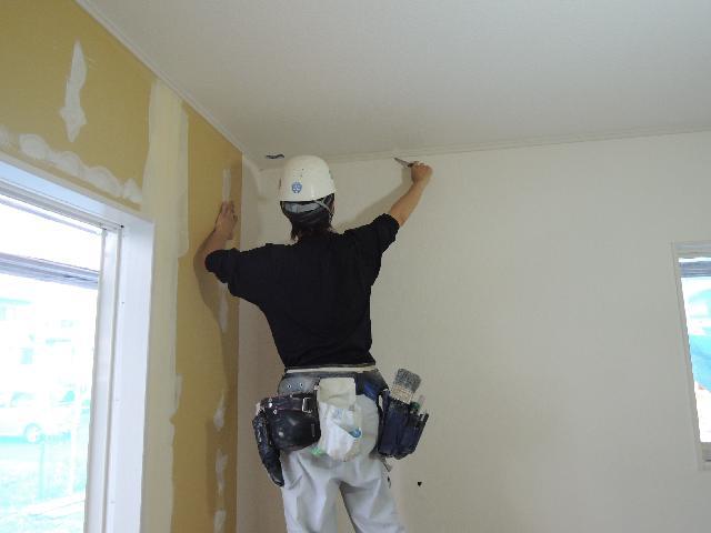 天井のクロス貼りが終了し、壁クロスの施工に入っております。