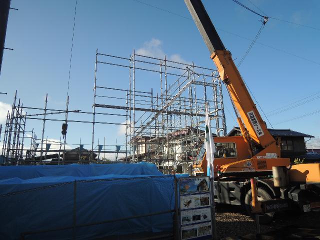 ▼河北町 YG様邸新築工事 05 軸組み建て方1日目 『テクノストラクチャーで建てる長期優良住宅』
