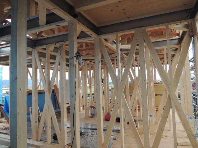 2階筋交い入れの状況です。まだ終了ではありません・・・。