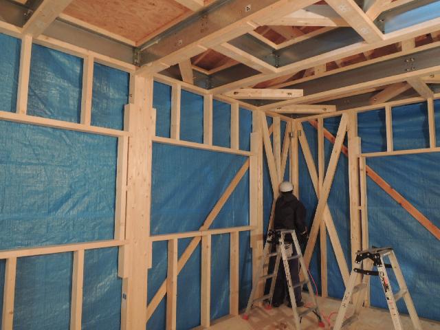 1・2階共筋交い入れ等の構造に係る工事が完了し、サッシ開口施工中です。