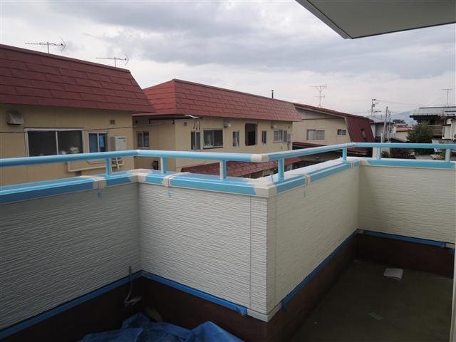 バルコニー手摺壁に笠木取付が終了しておりました。
