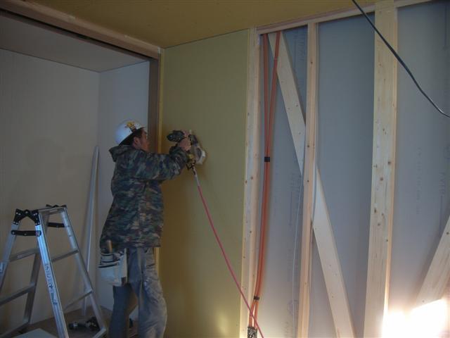 壁石膏ボード貼りももう少しで完了となります。
