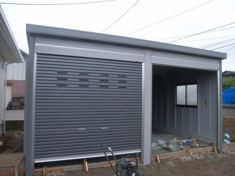 車庫の組立が完了しました。内のコンクリートの打設も完了です。