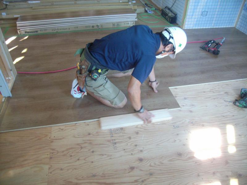 2階の床貼りが終了し、1階の床貼り作業にはいりました。
