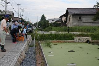 今回、地区の皆さんでEM活性液、EM団子を投入致しました。