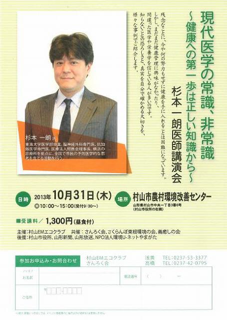 杉本一朗医師の講演会のご案内です。