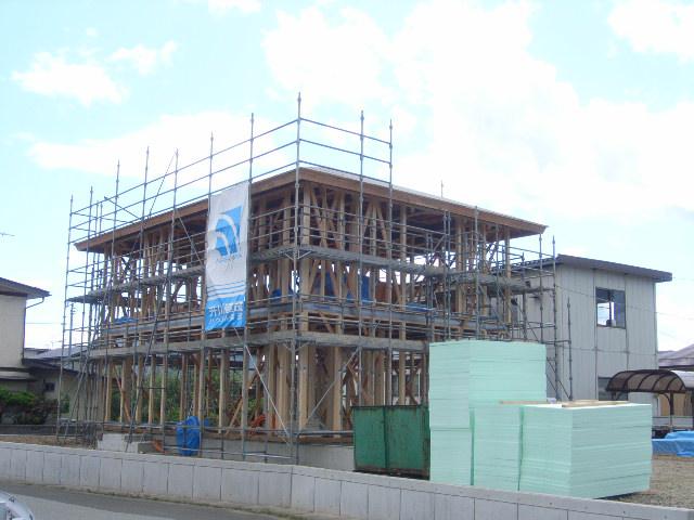 M様邸では建方も完了し内部の羽柄工事中です。