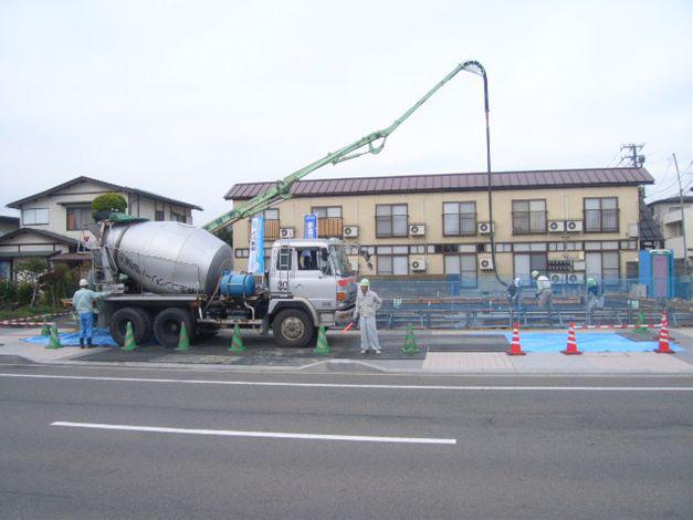J.S様邸は、立地条件の関係から道路(歩道)からの打設と