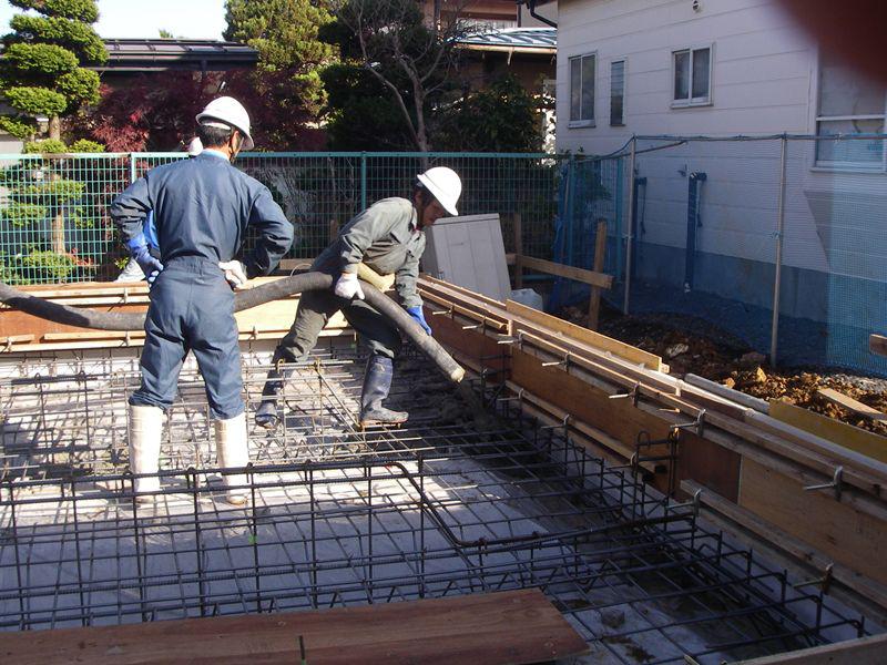 配筋検査も無事終了し、今日は土間コンンクリートの打設です。