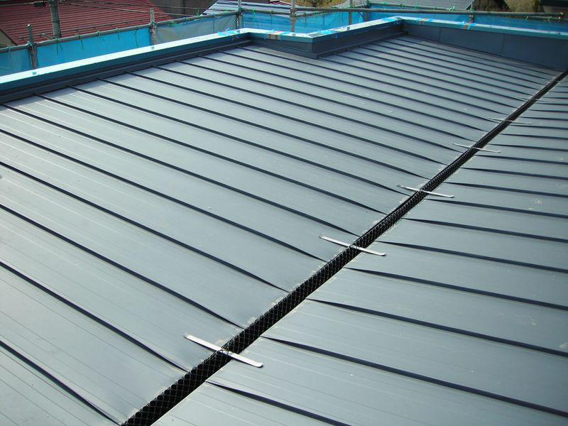 無落雪屋根はパラペットの笠木が取り付くと完成のようです。