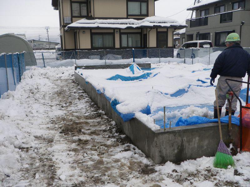 とりあえず明日は持ちそうなので基礎に墨出しをします。