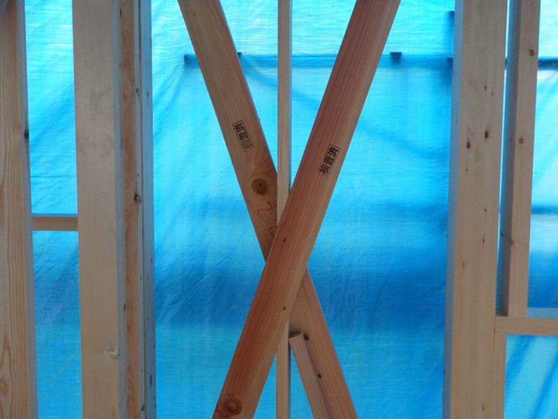 写真のようにチェックが済んだ柱や筋違いには『検査済』の印で