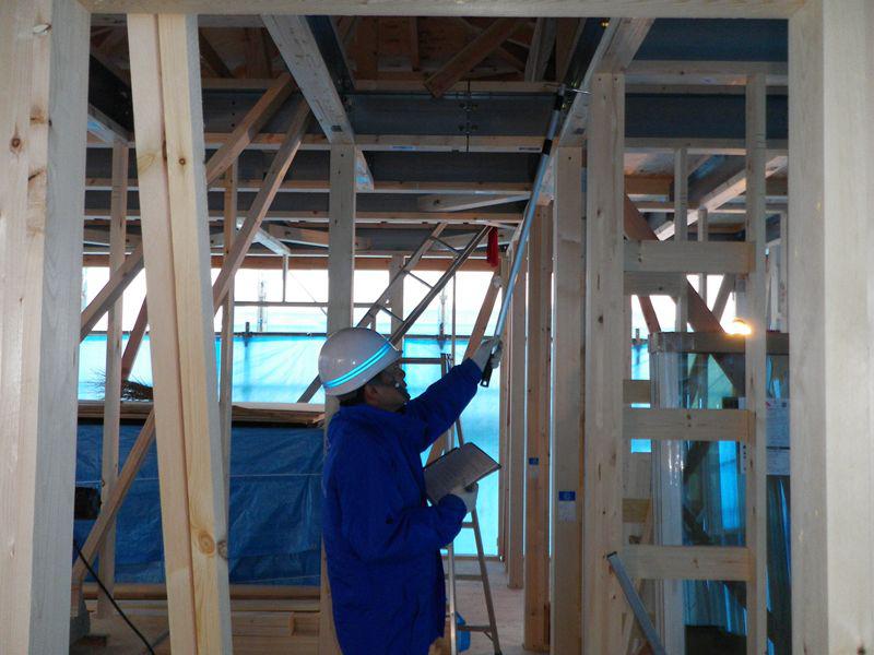 筋違いや各接合部分の取付状況など細部まで検査を受けます。