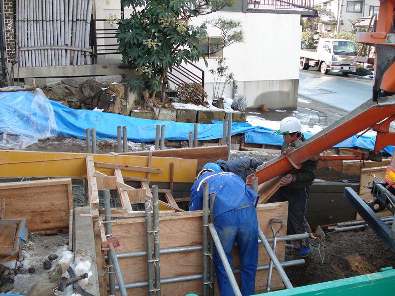 外構工事は、階段・スロープなどのコンクリート打設です。