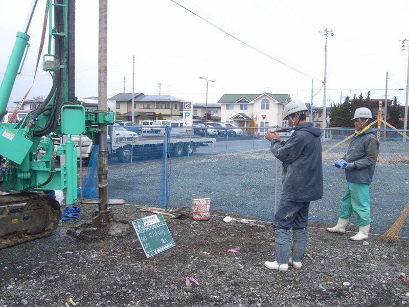 施工前に柱状地盤改良を施工するポイントにマークしておきます。