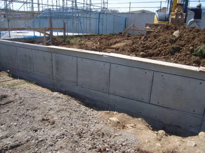 擁壁の養生も終わり埋め戻しに入っているようです。