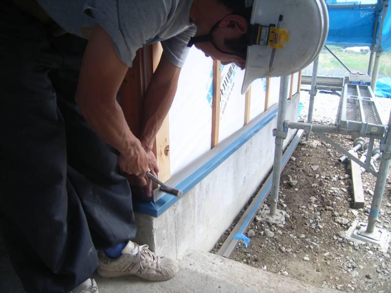 外壁工事が開始されています。まずは水切り取付から・・・