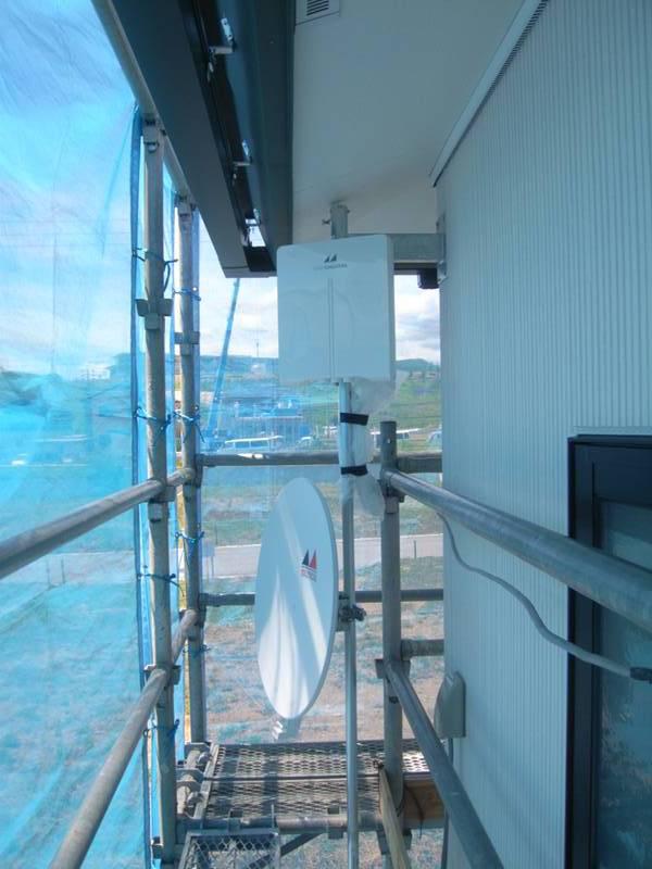 外壁工事も終了し足場解体前に各機器の取付をおこなっております。