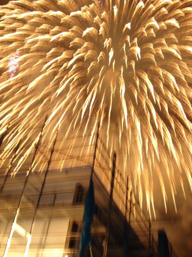 15日にO町の花火大会があり、建設現場で観覧・・・火災防止に努めてきました。