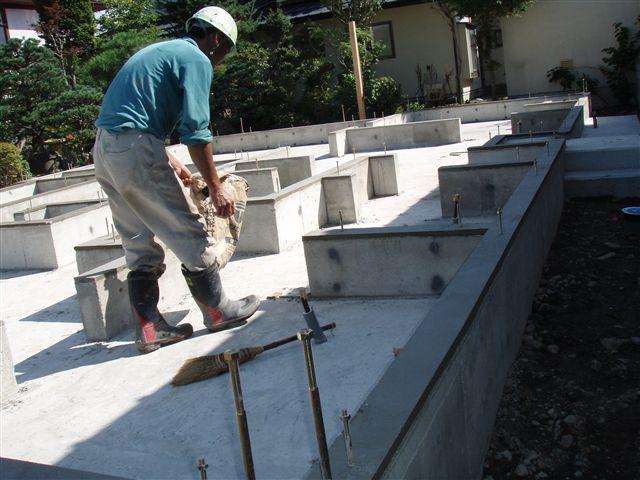基礎の立上りの上部を水平にする為に天端モルタルを
