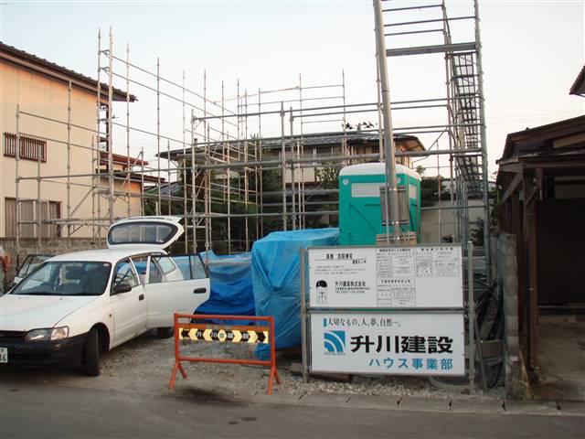 先攻足場の組立が完了し、後は建方を待つばかり。