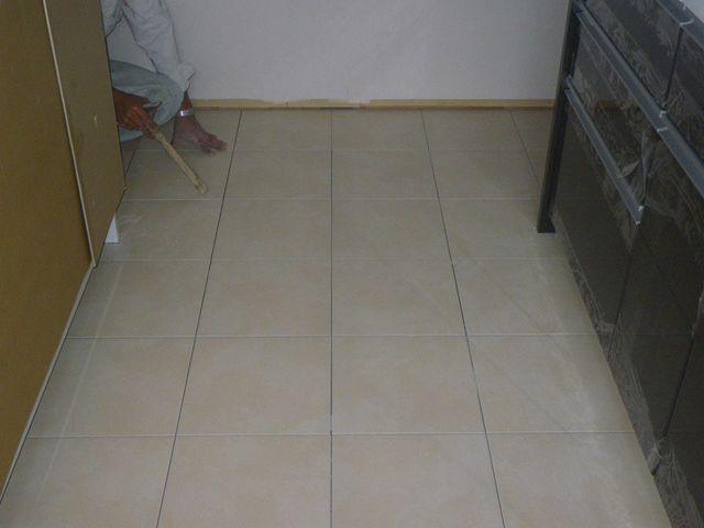 K様の奥様のご要望でキッチンの床はタイル貼り
