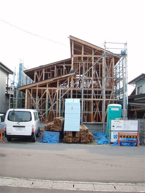 軸組みが完了し、防蟻防腐処理が施工されました。