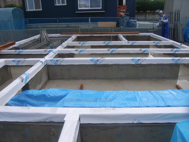 土台敷きも完了しました。材料・土台の雨養生もバッチリです!