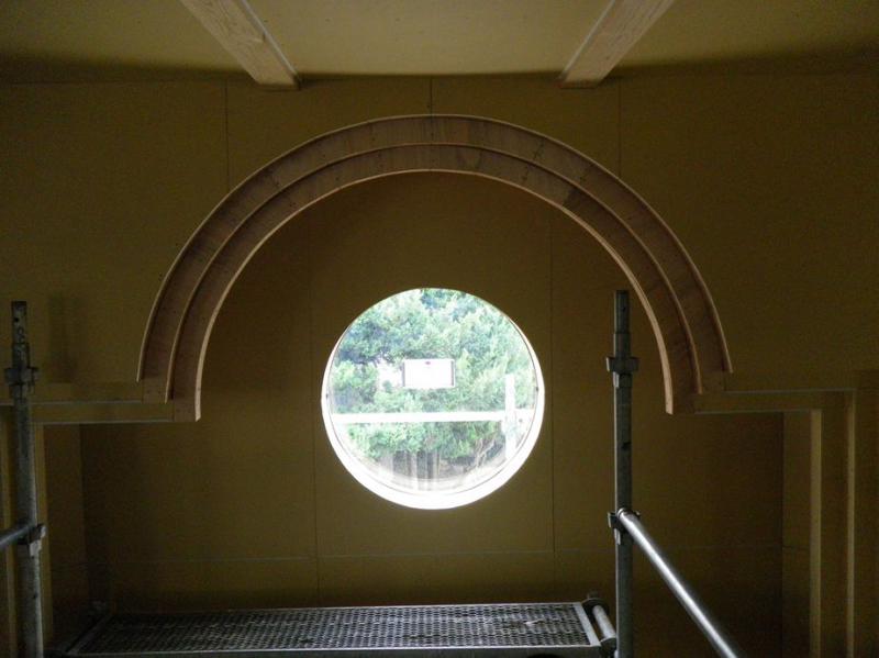 ステンドグラスは祭壇の中央上部のココに設置されます。